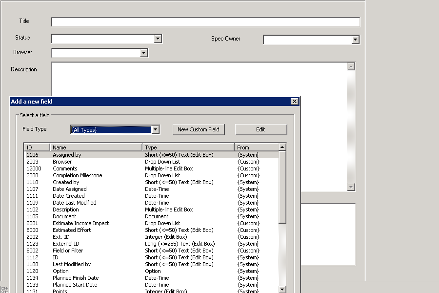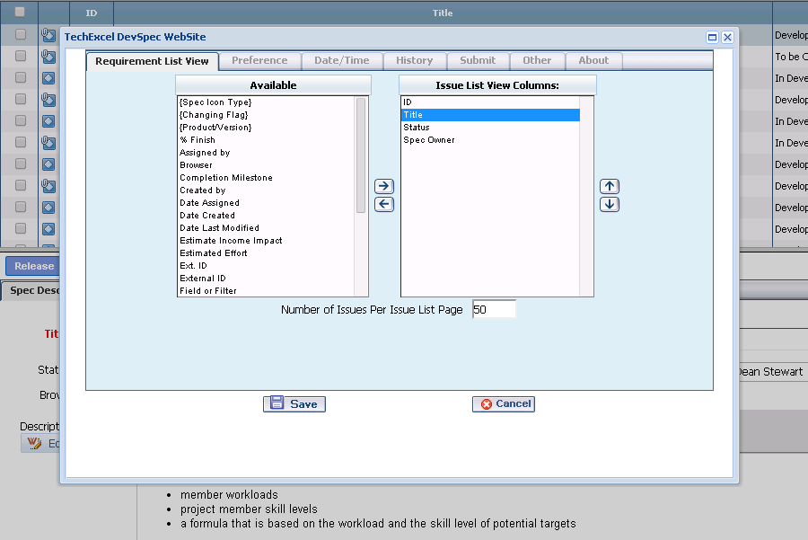 Perform user level customization throughout the DevSpec module. Add unlimited number of custom fields and custom values using a wizard driven process to fit your business needs. DevSpec has the flexibility to even change the page layouts. Present a different set of fields and pages based on the type of requirement being created.