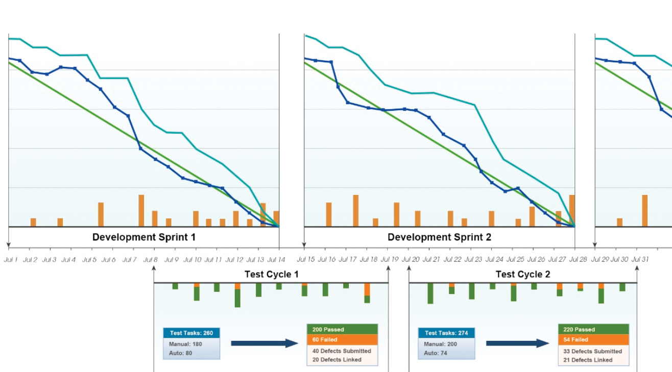 As you can see, QA test cycles are planned and executed but not necessarily synced with development iterations. While you want to naturally assign newly-found defects to the current active sprint, agile development requires the testing team to only submit defects to the product backlog. The QA regression testing team is responsible for finding defects, but they do not have the authority to decide when those defects are fixed. Having an independent team actually helps to create a more scalable agile process by finding defects earlier and prioritizing them in the product backlog.